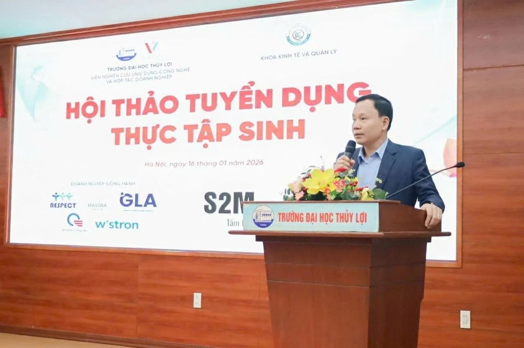 Phát biểu tại hội thảo, PGS. TS. Đoàn Yên Thế – Viện trưởng Viện Nghiên cứu Ứng dụng công nghệ và Hợp tác doanh nghiệp, Trường Đại học Thủy lợi – nhấn mạnh vai trò của các chương trình thực tập có định hướng. Theo ông, sinh viên không chỉ cần kiến thức chuyên ngành mà còn phải được rèn luyện kỹ năng, tác phong và làm quen sớm với văn hóa doanh nghiệp. Việc lựa chọn đúng nơi thực tập là yếu tố then chốt giúp sinh viên hình thành nền tảng nghề nghiệp vững chắc và có việc làm phù hợp ngay sau khi tốt nghiệp.