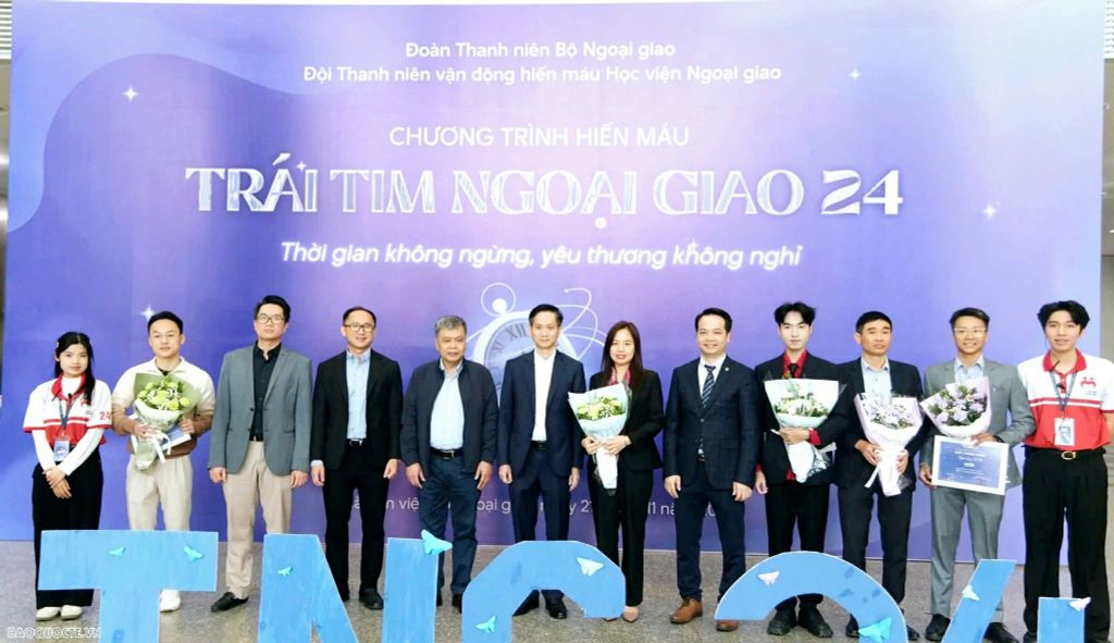 Ngày 21/11, tại Nhà làm việc Bộ Ngoại giao (số 2 Lê Quang Đạo, Hà Nội), chương trình hiến máu nhân đạo “Trái tim Ngoại giao” đã diễn ra trong không khí sôi nổi, ấm áp và đầy nghĩa tình. Sự kiện do Ban Chấp hành Đoàn Thanh niên Bộ Ngoại giao chủ trì tổ chức, với sự phối hợp của Học viện Ngoại giao, Viện Huyết học – Truyền máu Trung ương và các lực lượng thanh niên, tình nguyện viên.