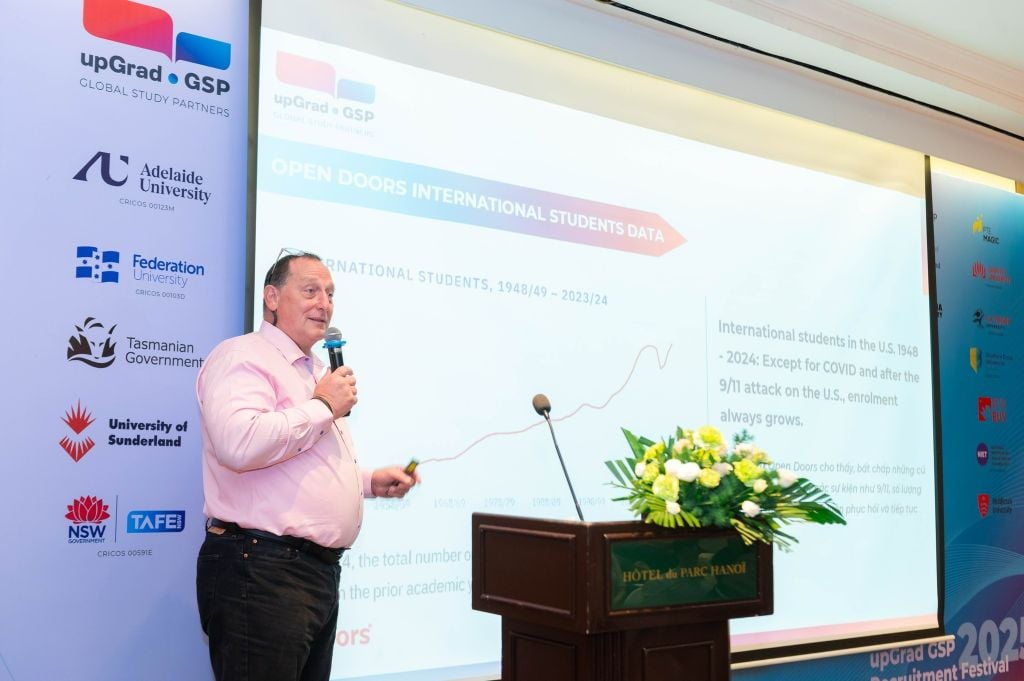 Là một trong những sự kiện tuyển sinh quốc tế nổi bật nhất năm 2025, upGrad GSP Recruitment Festival mang đến cơ hội kết nối, trao đổi trực tiếp giữa các trường đại học, học viện danh tiếng từ Úc, Canada, Anh, Mỹ và nhiều quốc gia khác với các đơn vị tư vấn du học tại Việt Nam.
