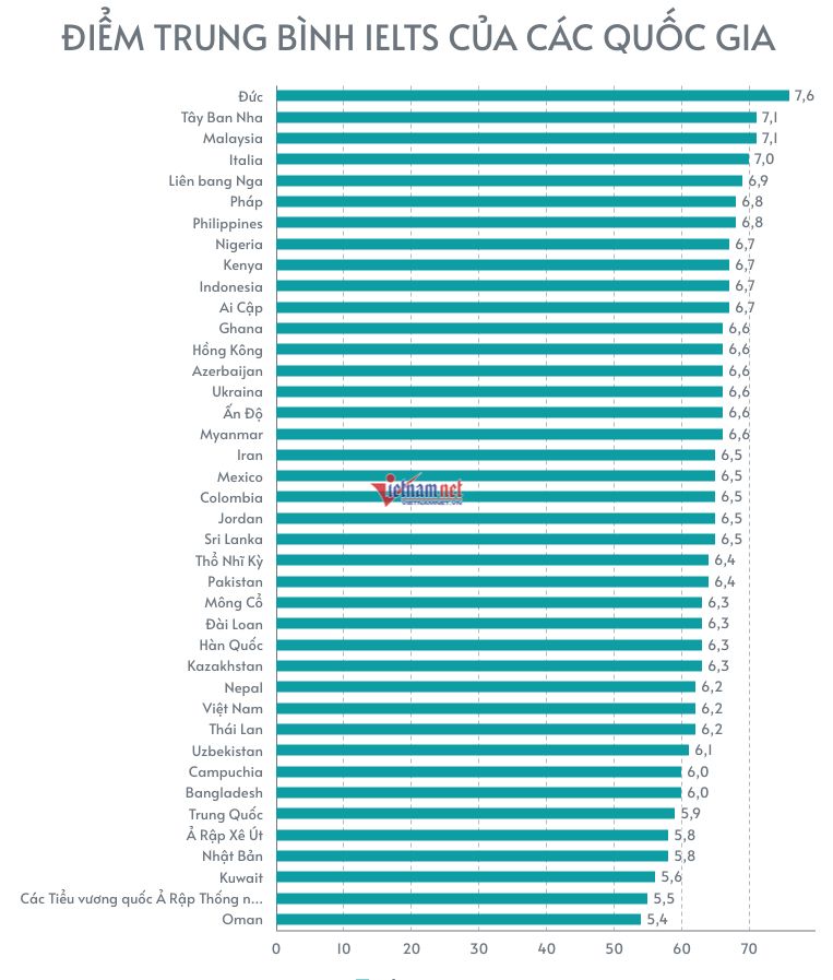 Khoảng 70% thí sinh Việt Nam đạt điểm từ 5.5 đến 7.0.